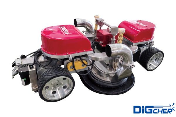 德高潔于2008年開始船體除銹機(jī)器人的開發(fā),目前擁有成熟的整體解決方案,并申報(bào)了實(shí)用新型專利(專利號(hào):ZL 2019 2 0432325.5)。該系統(tǒng)操作方便、自動(dòng)化程度高,通過(guò)站在地面上的操作人員,手持氣動(dòng)控制器可以操控機(jī)器人在船體外立面上X、Y方向任意行走。CR4G-UHP380船體除銹機(jī)器人-船舶除漆機(jī)器人是將超高壓水射流除漆、真空吸附、爬壁機(jī)器人作業(yè)三者協(xié)調(diào)于一體。通過(guò)超高壓泵獲得水射流除漆除銹能量,以爬壁機(jī)器人為載體,搭載真空除漆除銹清洗器,將除漆過(guò)程中產(chǎn)生的漆渣和銹渣廢水回收排放,達(dá)到減少排放、回收環(huán)保的目的。
